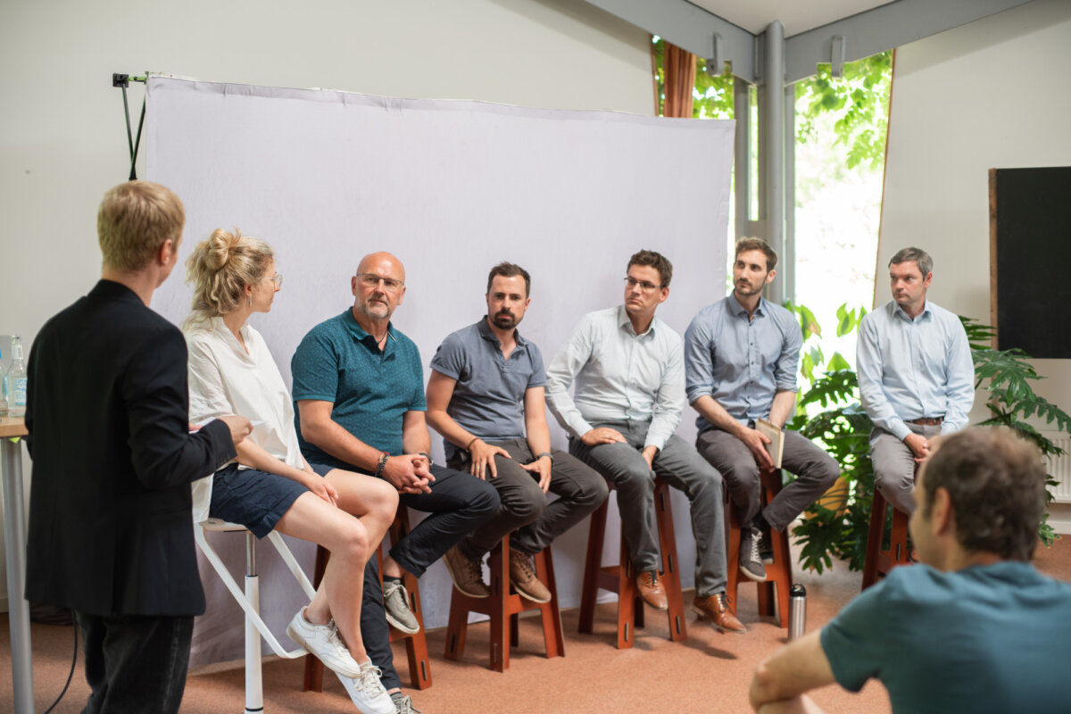 Moderiert von Michael Krieger diskutierten Expert:innen der Energiewende in der Zukunftswerkstatt, wie die Bürger:innen vor Ort mehr an der Energiewende beteiligt werden können. Matthias Kaulmann von gtk – Gesellschaft für regionale Teilhabe und Klimaschutz plant eine Bürgerbeteiligung in der brandenburgischen Stadt Lenzen an der Elbe. Carla Fee Weisse von der Landesenergie- und Klimaschutzagentur Mecklenburg-Vorpommern GmbH berät Kommunen in der Energiewende. Florian Müller von der Arbeitsgruppe Gesundheits- und Umweltpsychologie, MSH Medical School Hamburg erforscht die Erfolgsfaktoren von Beteiligungsprozessen in der Energiewende. Simon Schanz von Green Planet Energy entwickelt Mieterstrom-Anlagen. Wolf-Rüdiger Knoll von der IHK zu Schwerin sieht große Potenziale für regionale Unternehmen, um mehr Wertschöpfung durch die Energiewende zu erzeugen. Martin Kubiak vom UNESCO-Biosphärenreservat Flusslandschaft Elbe versucht, Energieerzeugung, Naturschutz und Landwirtschaft in der Flächenplanung zu verbinden. |