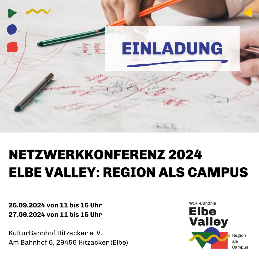 Am 26. & 27.9.2024 findet die Netzwerkkonferenz des Projekts „Region als Campus“ vom IZT im Kulturbahnhof Hitzacker (Landkreis Lüchow-Dannenberg) statt!